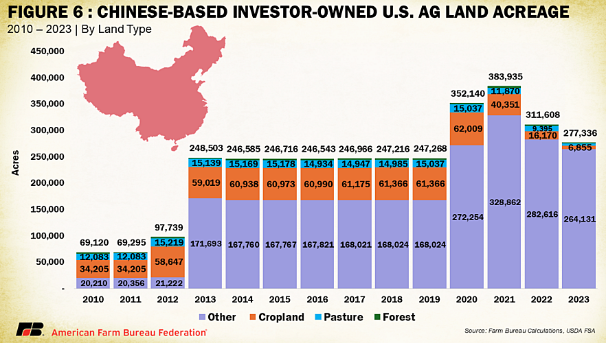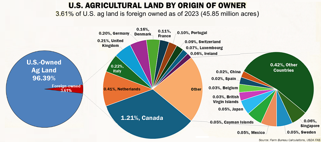 That said, foreign ownership has been growing—about 2.6 million new acres per year since 2017, and it doubled between 2009 and 2019. So it’s worth paying attention to.