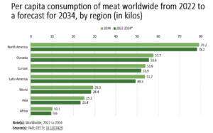 More people mean more protein. By 2034, the global population will grow an extra 600 million people to 8.8 billion, with protein needs projected to grow to 406 million metric tons from 351 million in 2024.